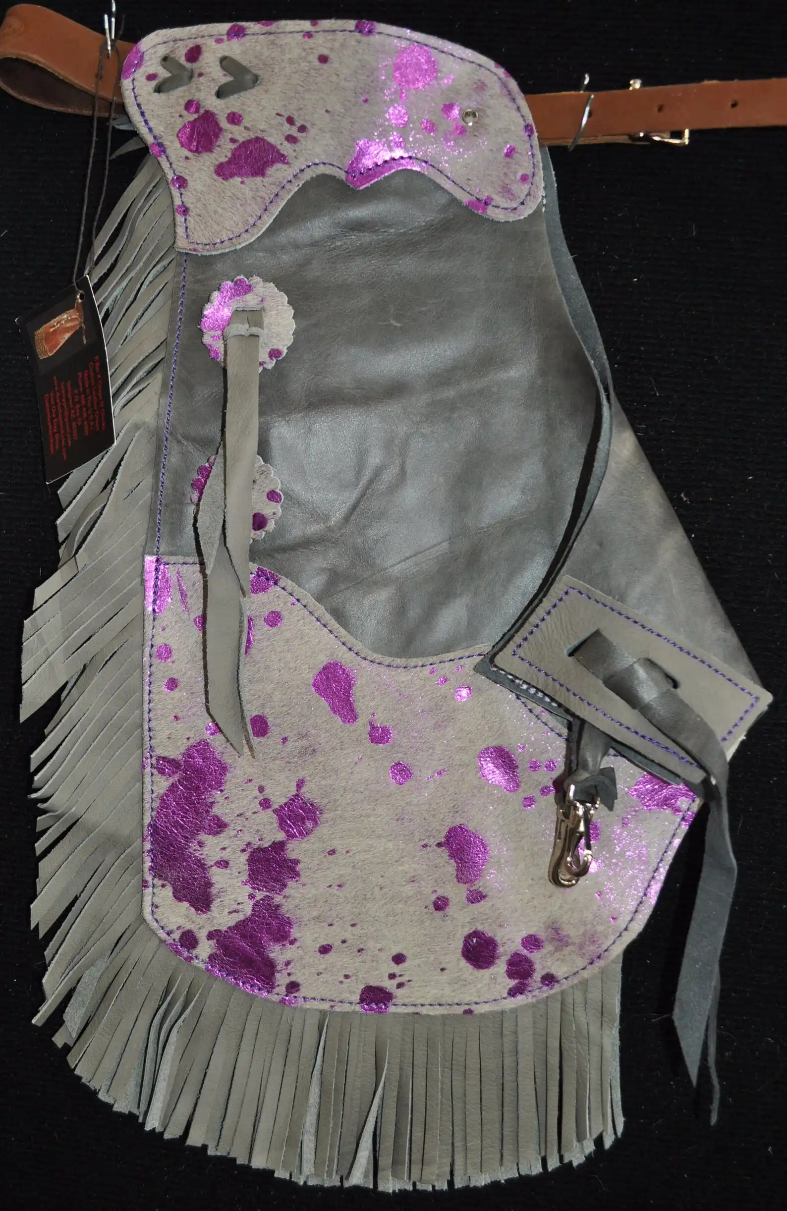 Select OptionsSelect Options Kids Kids Grey & Purple Leather Chaps – Western Fringe Riding Gear | The Hybrid Leather $ 320