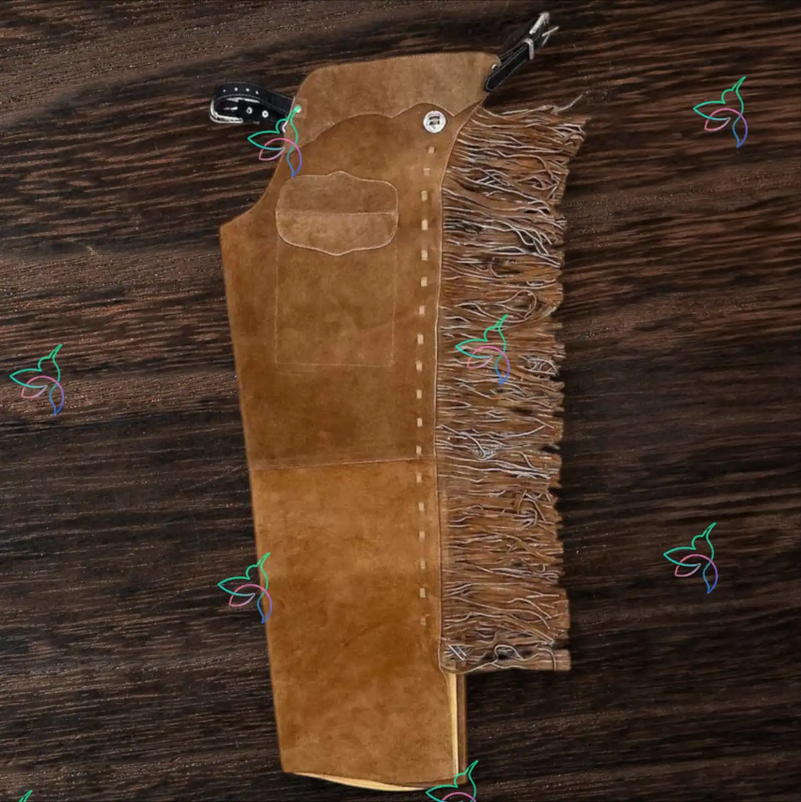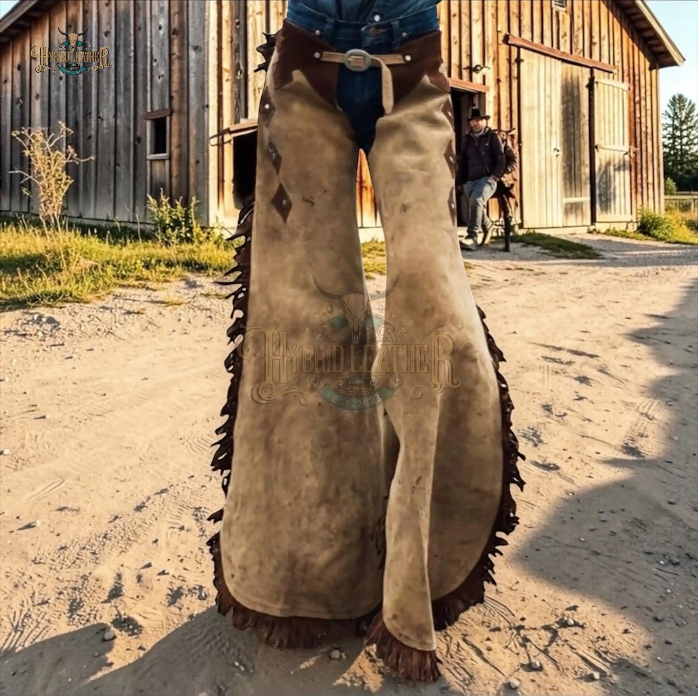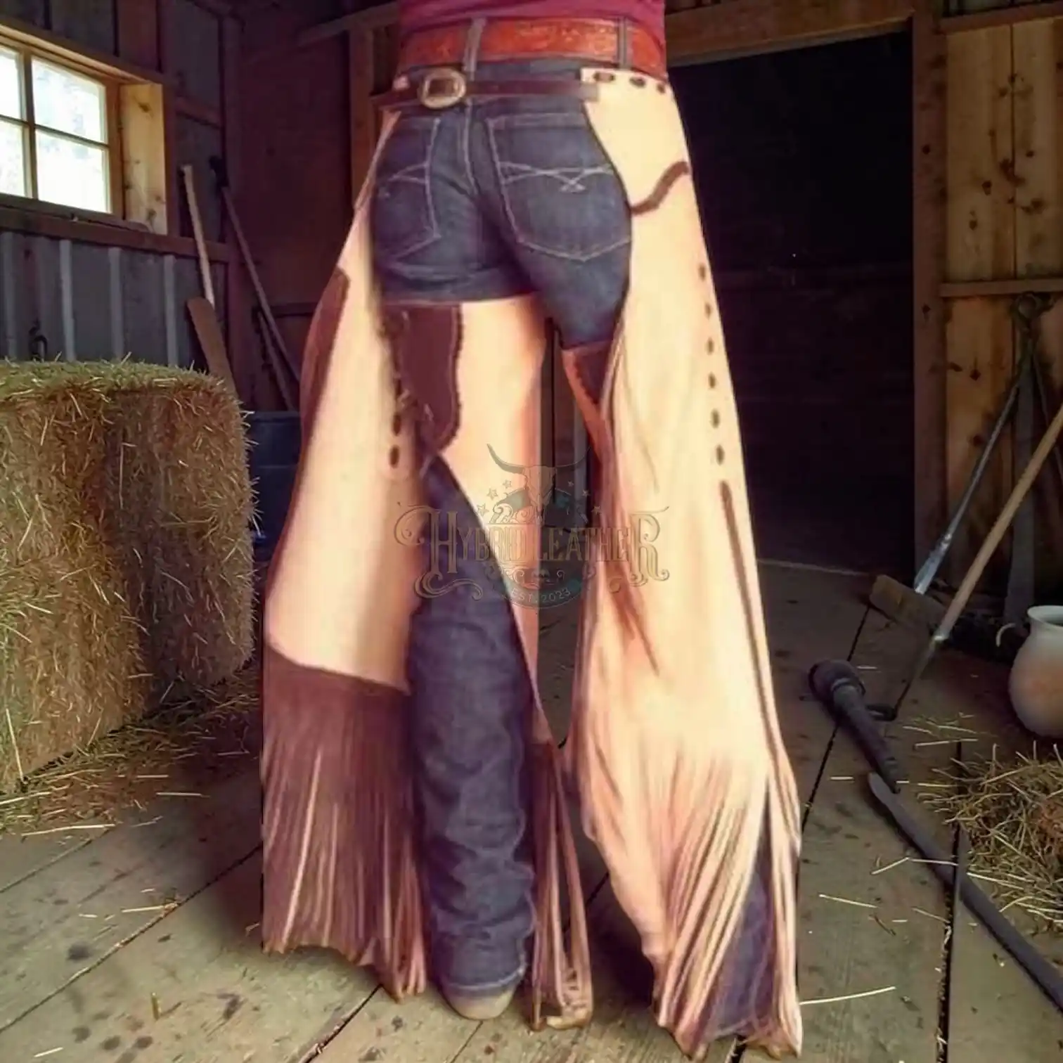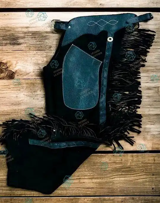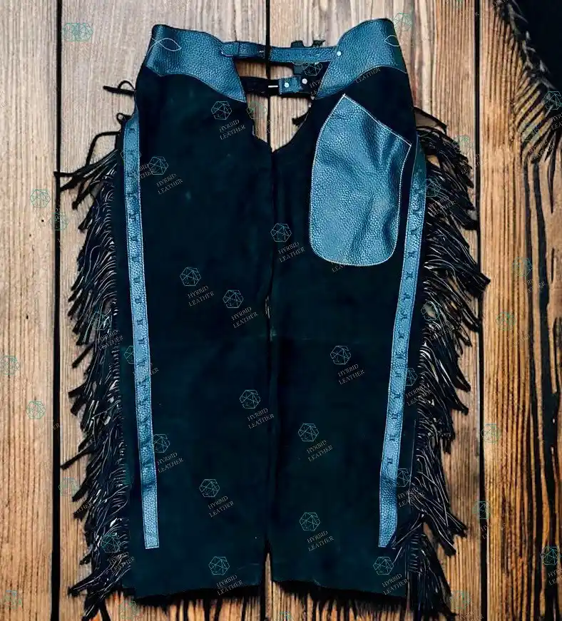 ↓ 40% Select OptionsSelect Options Women Hand-Crafted Roughout Leather Cowgirl Chaps with Diamond Inlays and Dark Fringe | The Hybrid Leather $ 300 Original price was: $ 300.$ 180Current price is: $ 180.