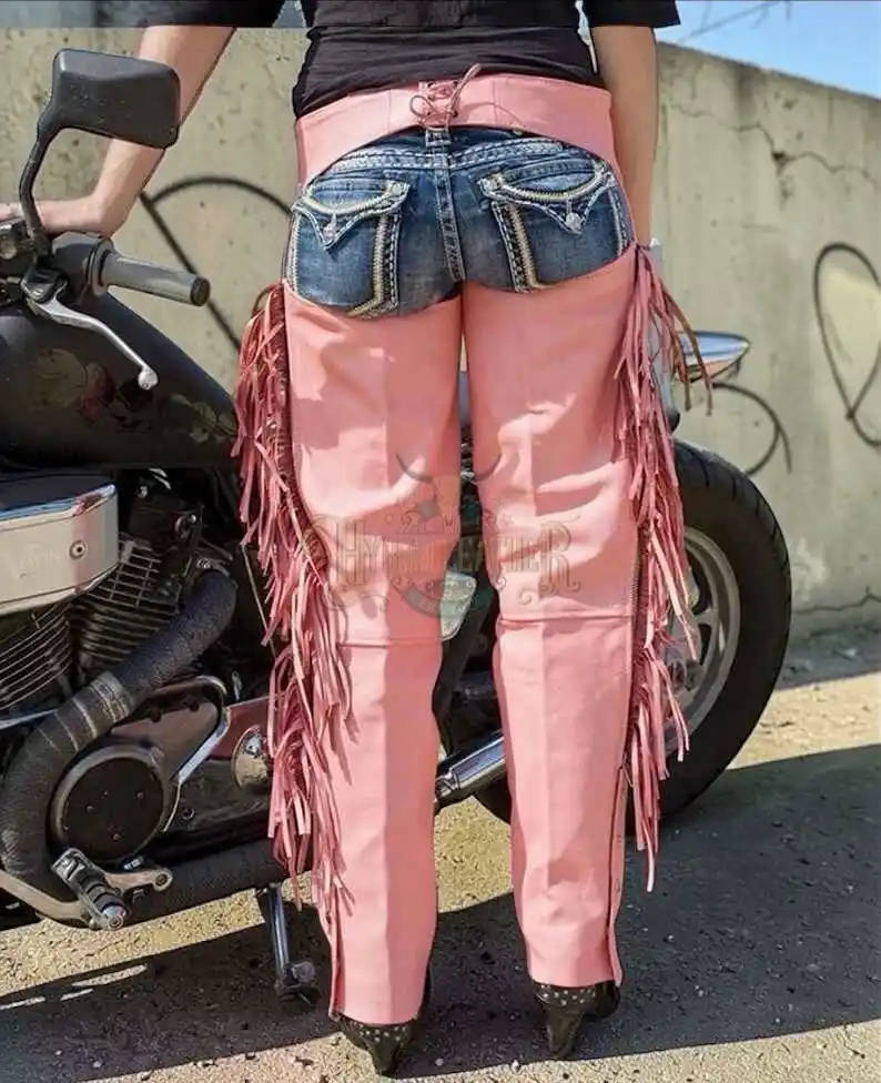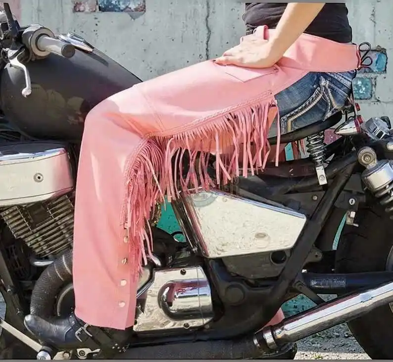 ↓ 40% Select OptionsSelect Options Women Women’s Pink Leather Motorcycle Chaps with Side Fringe and Snap Leg Closures | The Hybrid Leather $ 300 Original price was: $ 300.$ 180Current price is: $ 180.