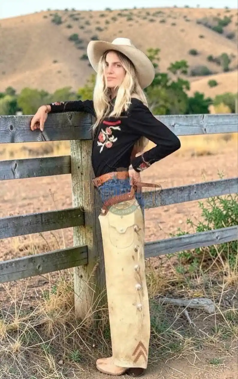 ↓ 40% Select OptionsSelect Options Women Women’s Roughout Leather Cowgirl Chaps with Diamond Inlays and Wide Flare | The Hybrid Leather $ 300 Original price was: $ 300.$ 180Current price is: $ 180.