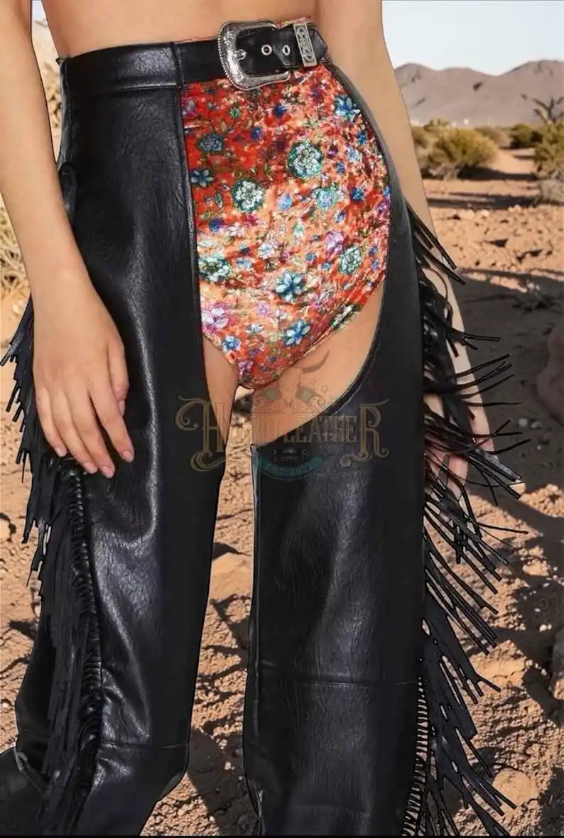 ↓ 40% Select OptionsSelect Options Women Women’s Black Leather Festival Chaps with Side Fringe and Western Buckle | The Hybrid Leather $ 300 Original price was: $ 300.$ 180Current price is: $ 180.