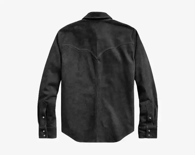 Upgrade your wardrobe with this men’s suede leather shirt, designed in a classic Western style. Available in black, brown, and tan – perfect for casual or rugged looks.